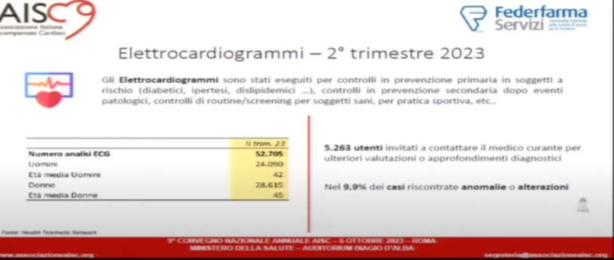 I dati riferiti al 2° trimestre del 2023 hanno visto effettuati nel network delle farmacie che sia appoggiano alla stessa piattaforma, 52,705 Ecg, e nel 9,9% dei casi sono state riscontrate anomalie o alterazioni.