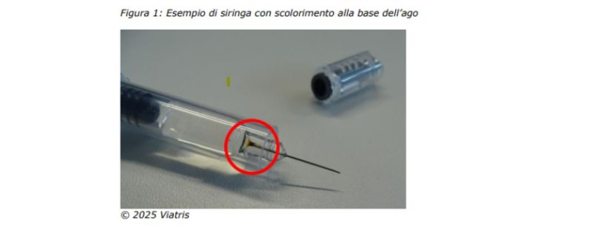 I potenziali rischi associati all’utilizzo di una siringa preriempita che presenti scolorimento alla base dell’ago, includono “una possibile mancanza di efficacia dovuta all’occlusione dell’ago, nonché la comparsa di eventi avversi qualora vengano utilizzate siringhe interessate dal difetto. Tali eventi possono includere reazioni di ipersensibilità, complicanze nel sito di iniezione (inclusa la rottura dell’ago), effetti tromboembolici ed infezioni sistemiche”.