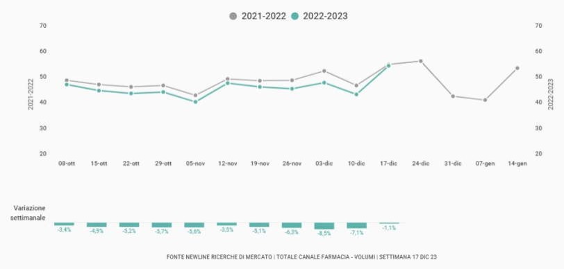 Il monitoraggio settimanale di New Line segnala la risalita di etico e positiva la dermocosmesi, ma in generale il canale è ancora in negativo